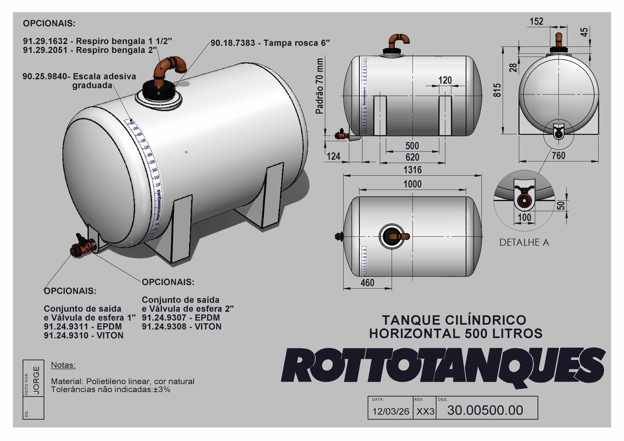 Tanque cilíndrico horizontal de 500 litros