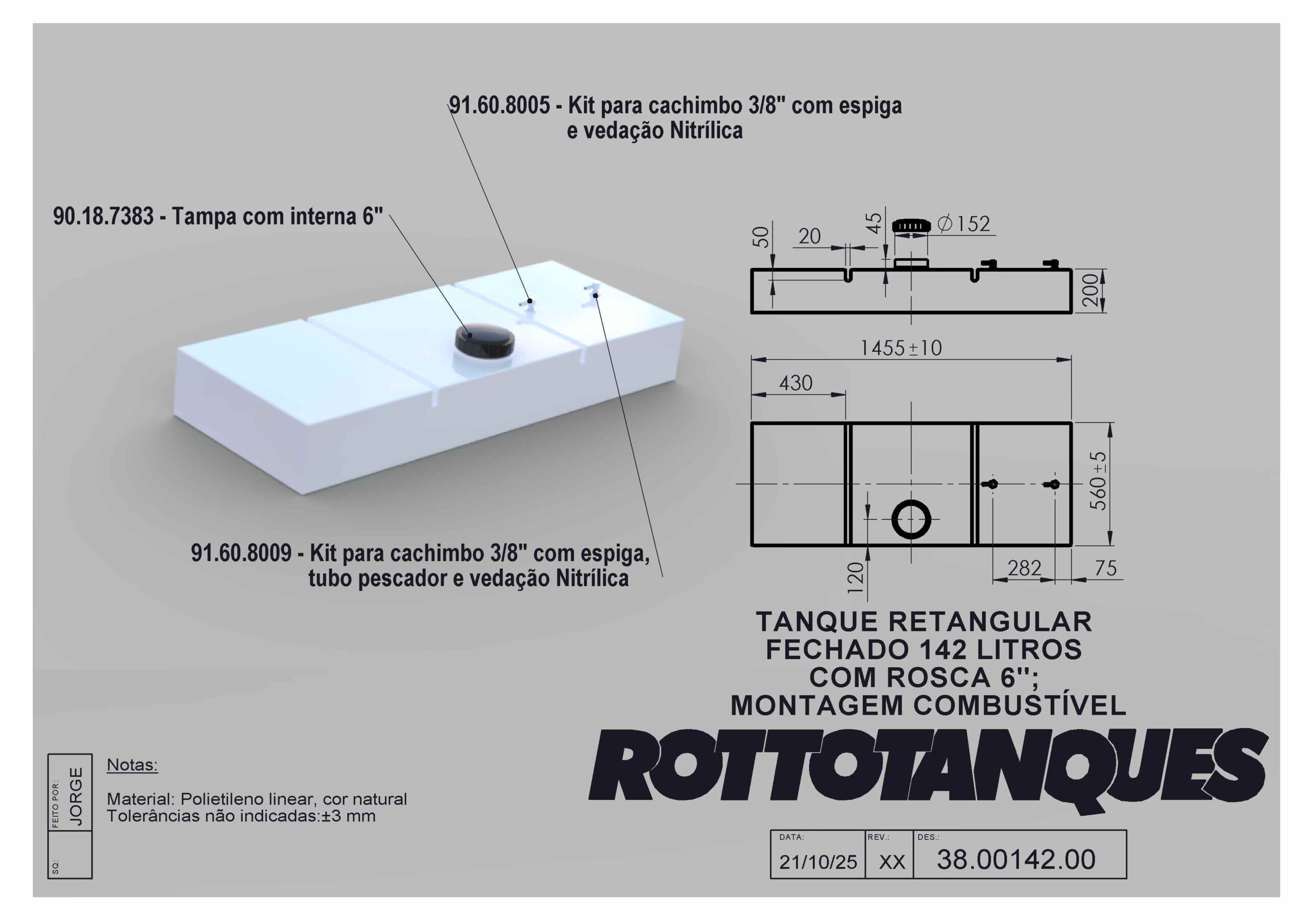 A Rottotanques pode personalizar este tanque conforme seu uso e necessidade, adaptando inclusive a espessura do material em função do produto armazenado e condições de uso.